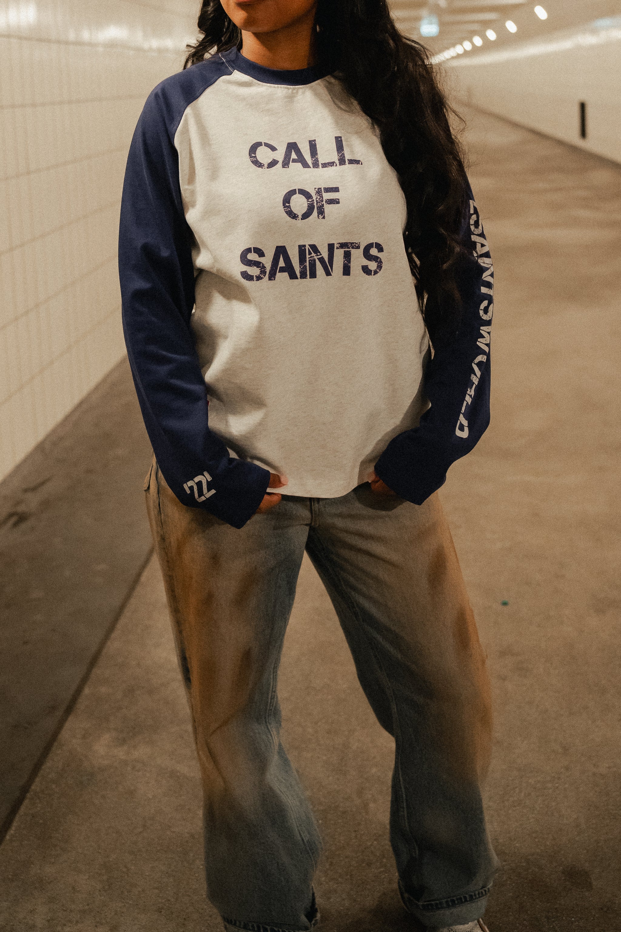 A STATEMENT PIECE FOR THOSE WHO DON’T PLAY TO PARTICIPATE — BUT TO DOMINATE. THE CALL OF SAINTS LONGSLEEVE REPRESENTS WAR MENTALITY, LOYALTY, AND BROTHERHOOD. INSPIRED BY SOLDIERS IN THE FIELD AND SAINTS IN THE STREETS.